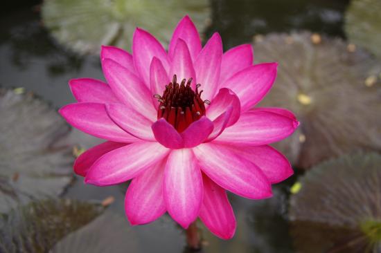 Обои Розовый цветок лотоса с листьями в воде