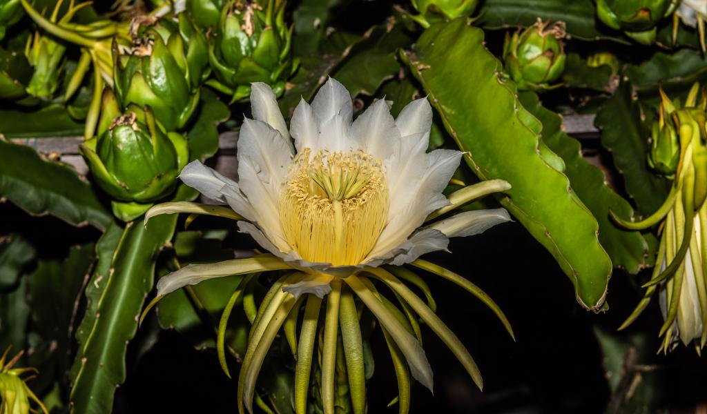 Обои Красивый белый цветок кактуса крупным планом