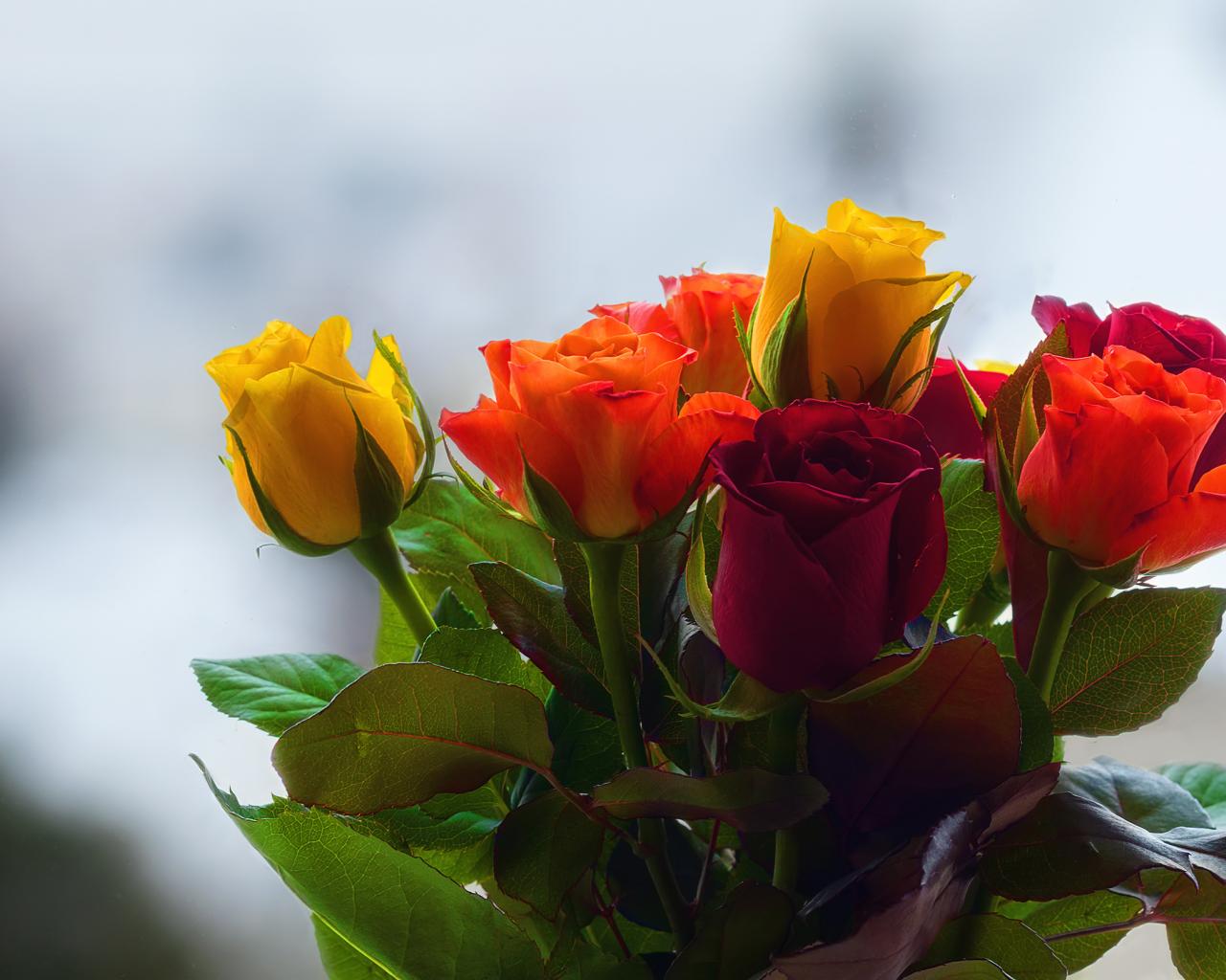 Обои Букет колючих разноцветных роз