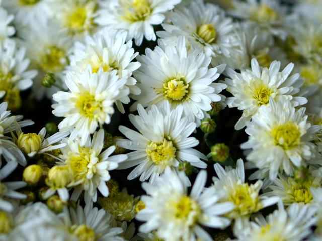 Обои Много белых хризантем крупным планом