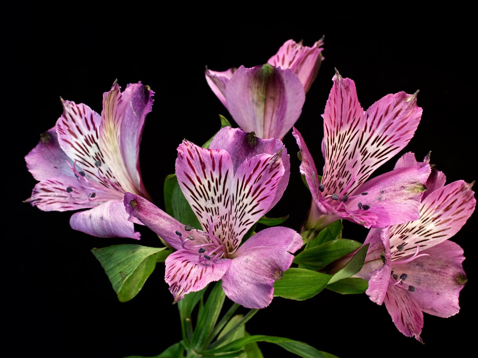 Обои Сиреневые цветы альстромерия на черном фоне