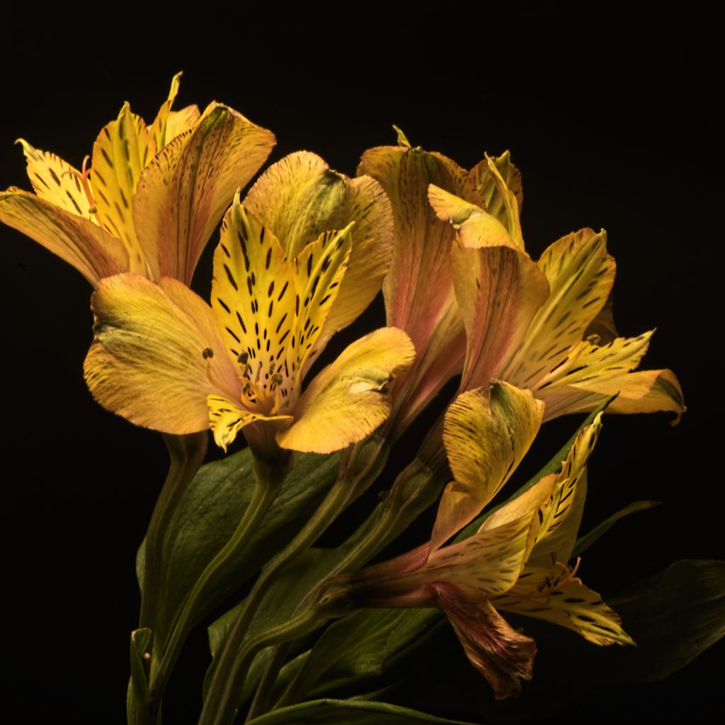Обои Желтые красивые цветы альстромерия на черном фоне