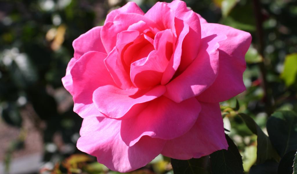 Обои Красивая нежная розовая роза в лучах солнца на клумбе
