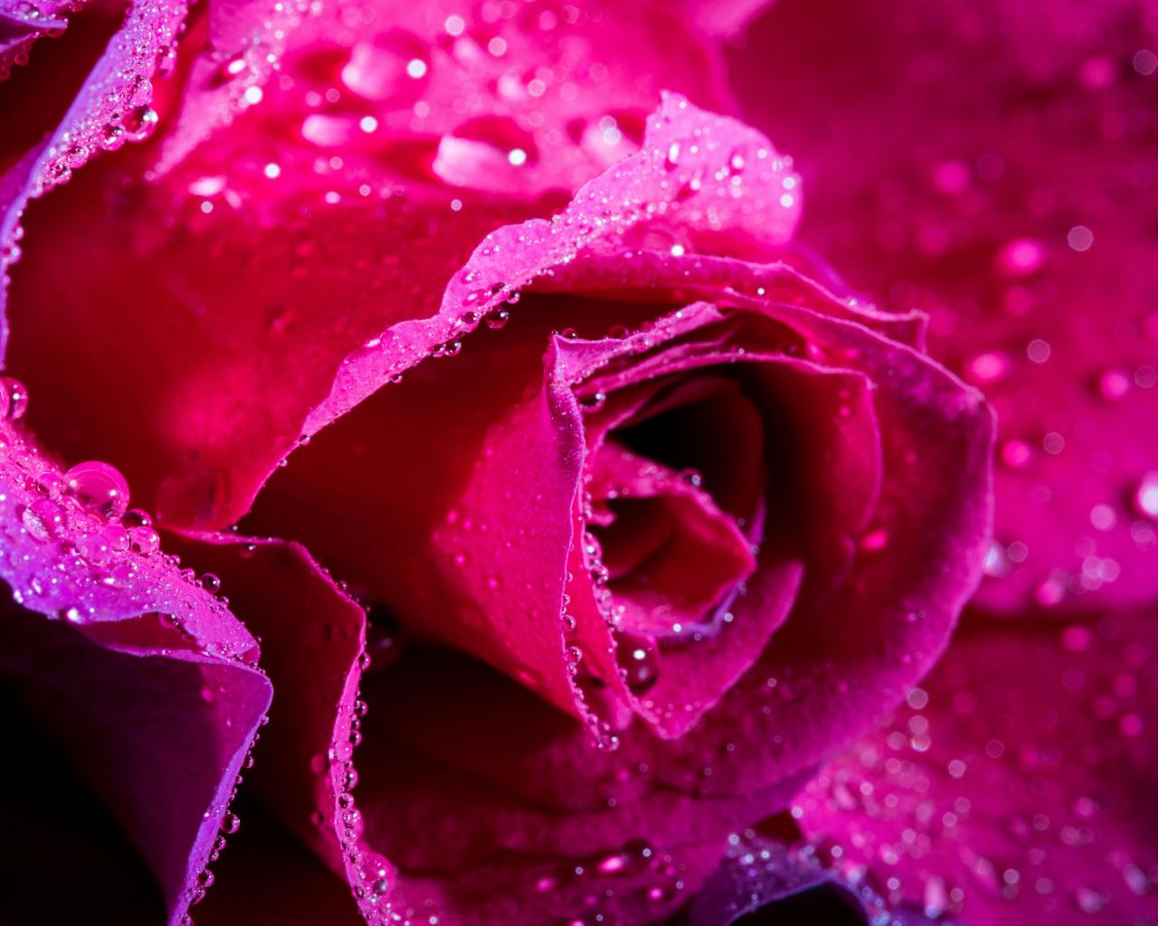 Обои Нежная розовая роза в каплях росы крупным планом