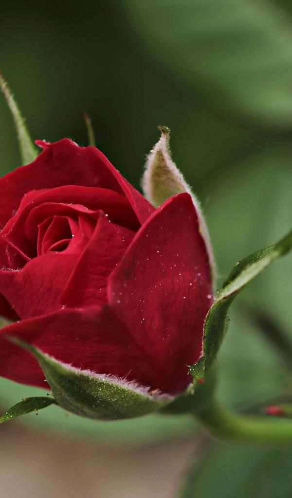Обои Красивая бордовая роза с бутонами крупным планом