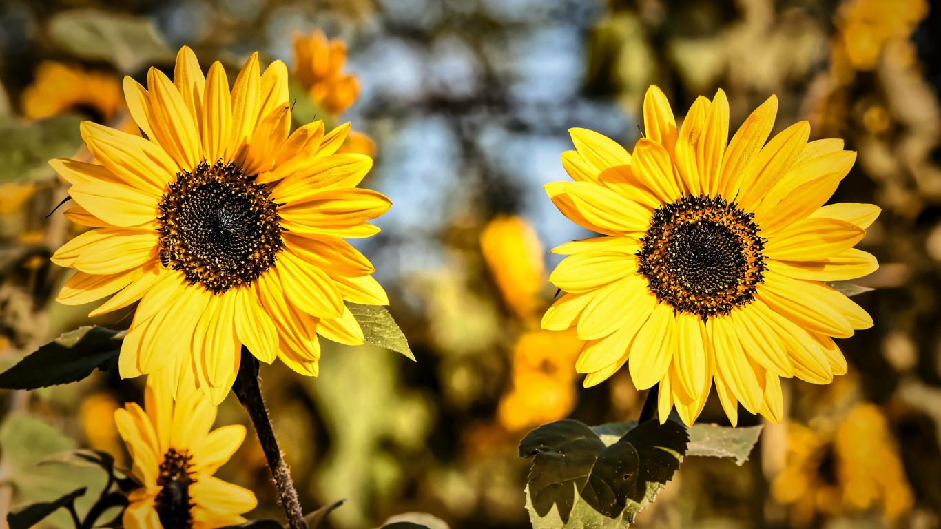 Обои Два желтых цветка подсолнуха крупным планом