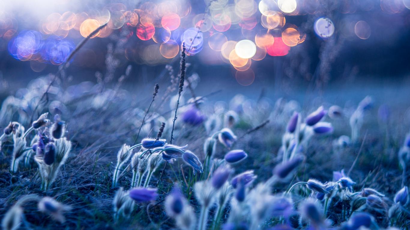 Обои Голубые цветы прострела гнутся от ветра