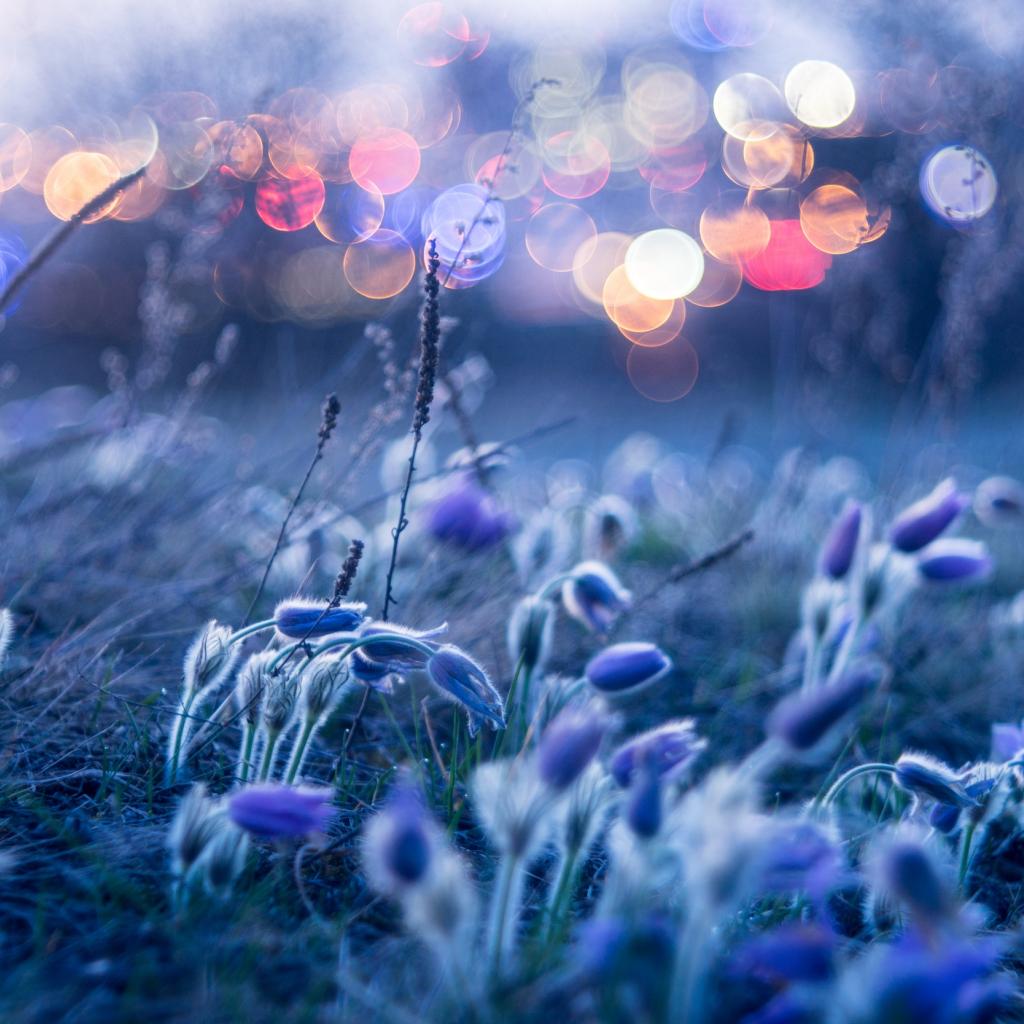 Обои Голубые цветы прострела гнутся от ветра