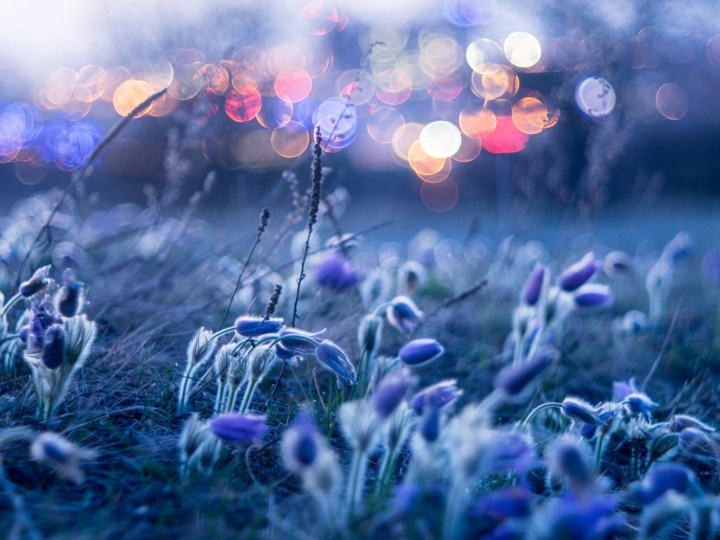 Обои Голубые цветы прострела гнутся от ветра