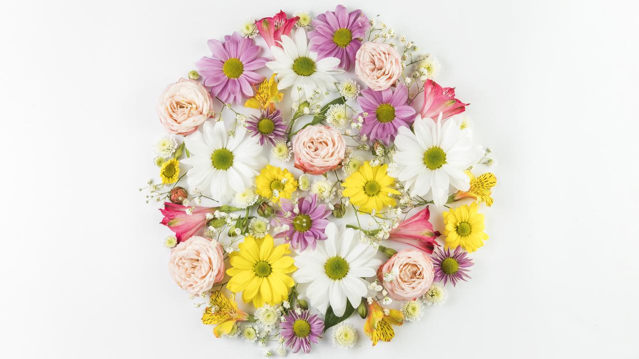 » Обои Сорванные цветы на белом фоне