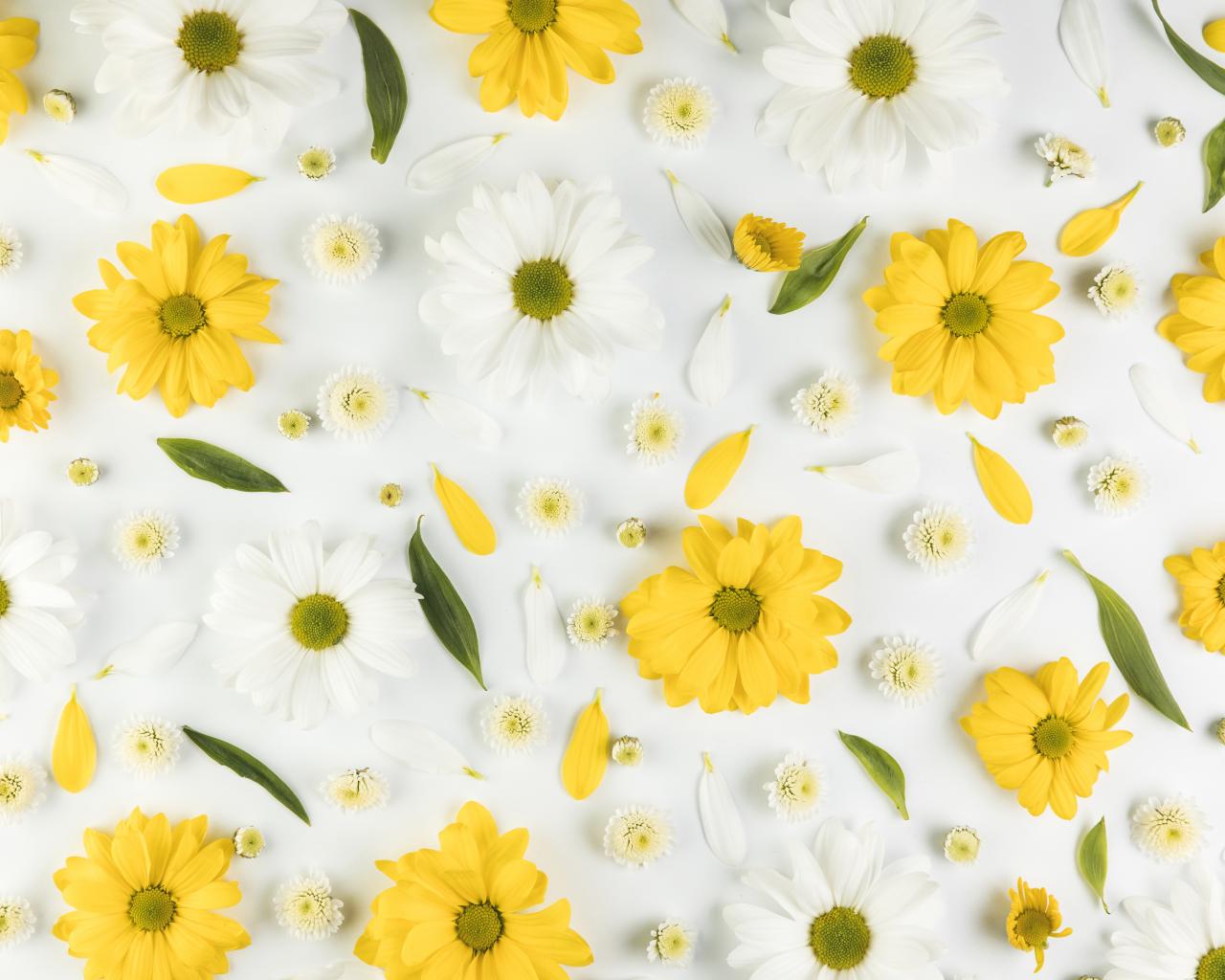 Обои Желтые и белые хризантемы на белом фоне