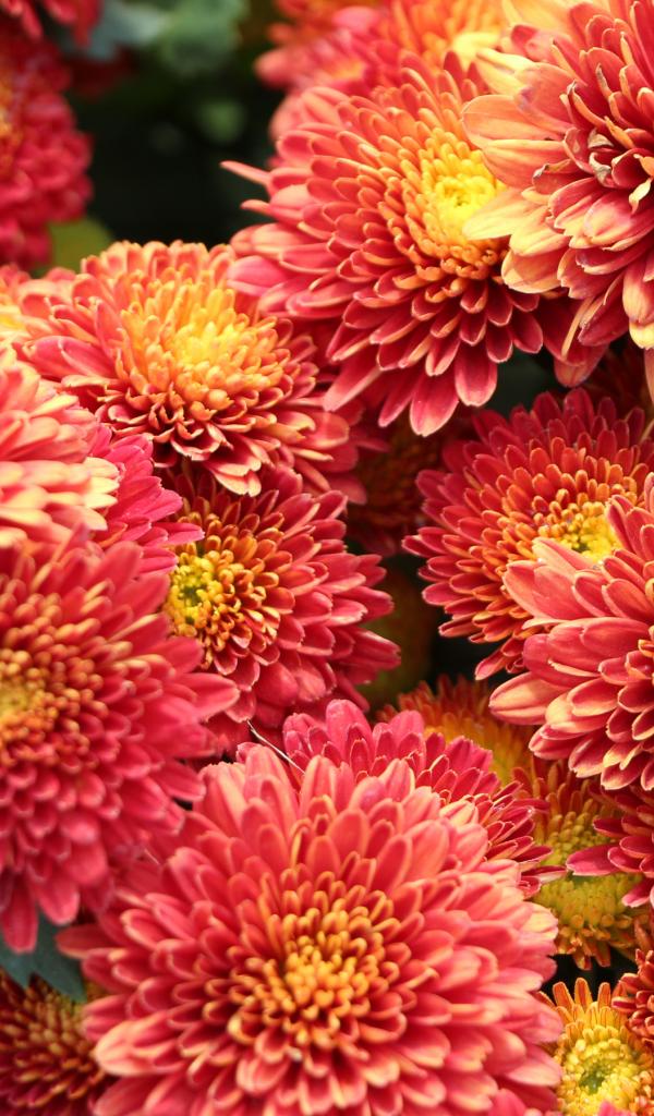 Обои Оранжевые пушистые хризантемы крупным планом