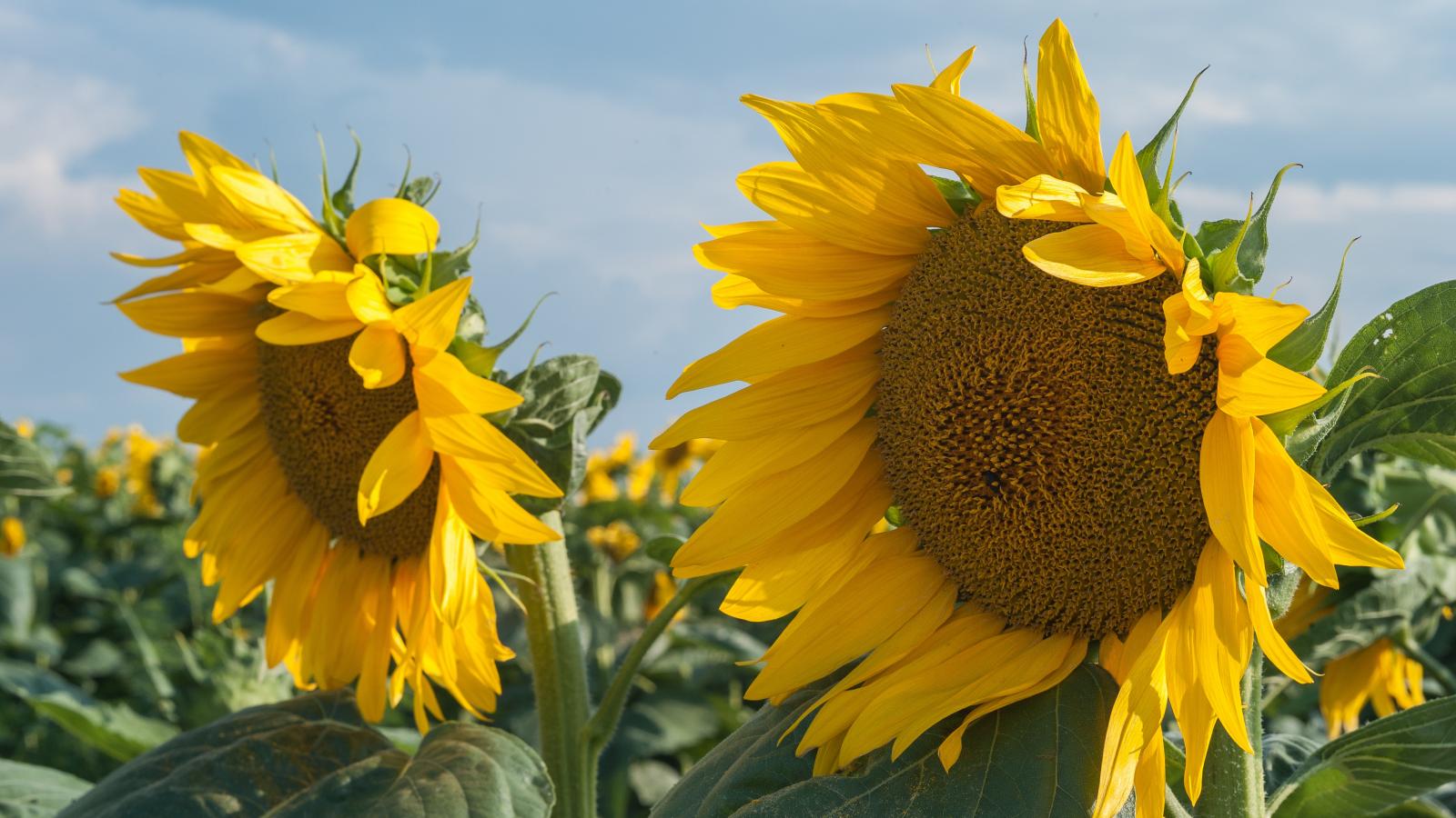 Обои Желтые большие цветы подсолнуха на поле