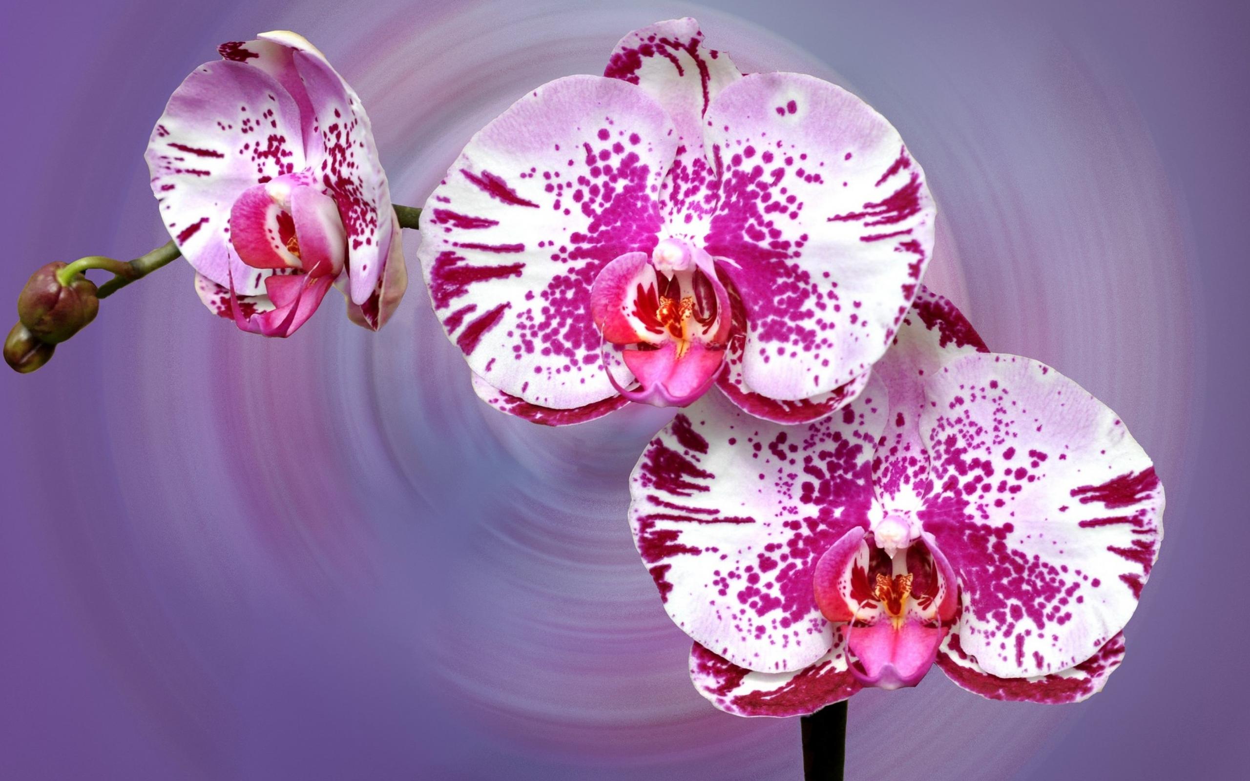 Обои Красивая пятнистая розовая орхидея на сиреневом фоне