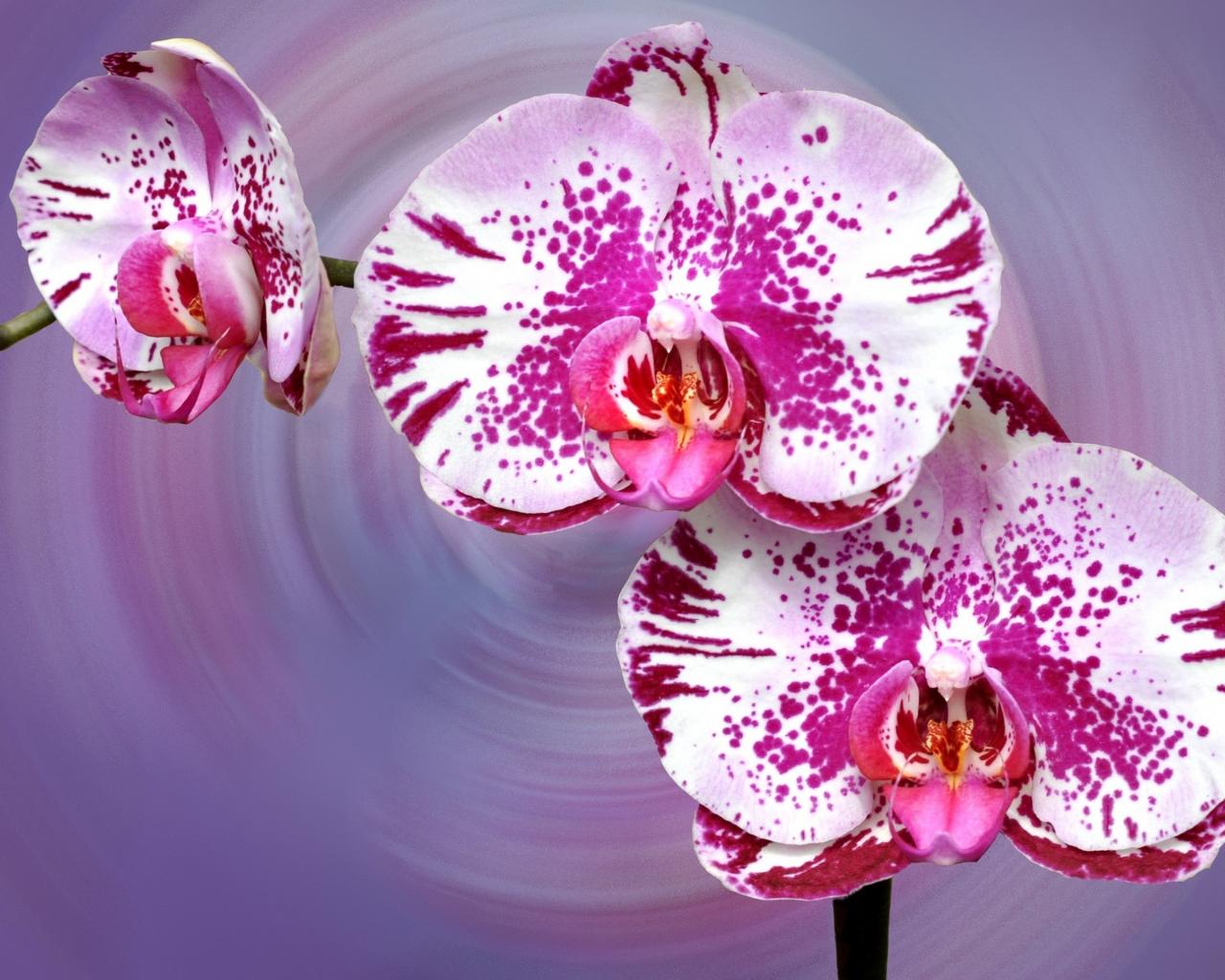 Обои Красивая пятнистая розовая орхидея на сиреневом фоне
