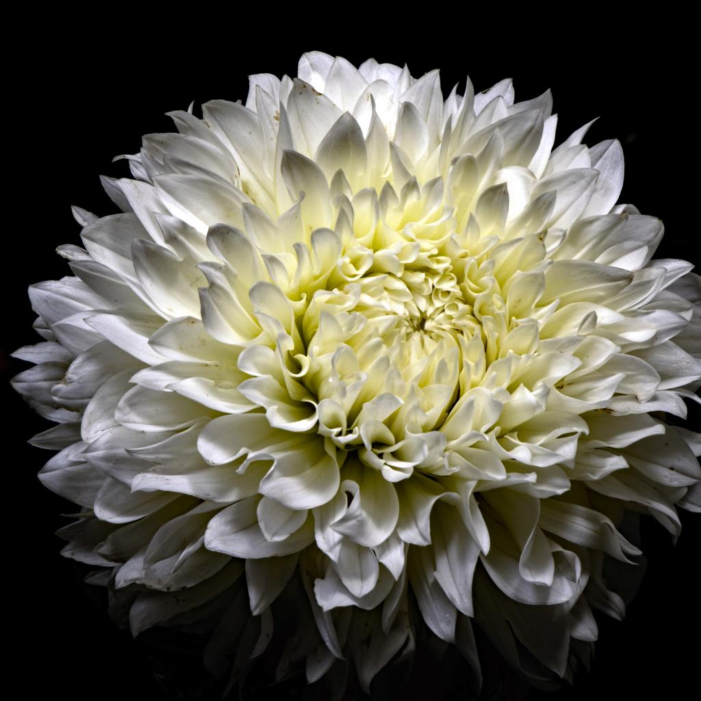 » Обои Красивая белая пушистая хризантема на черном фоне