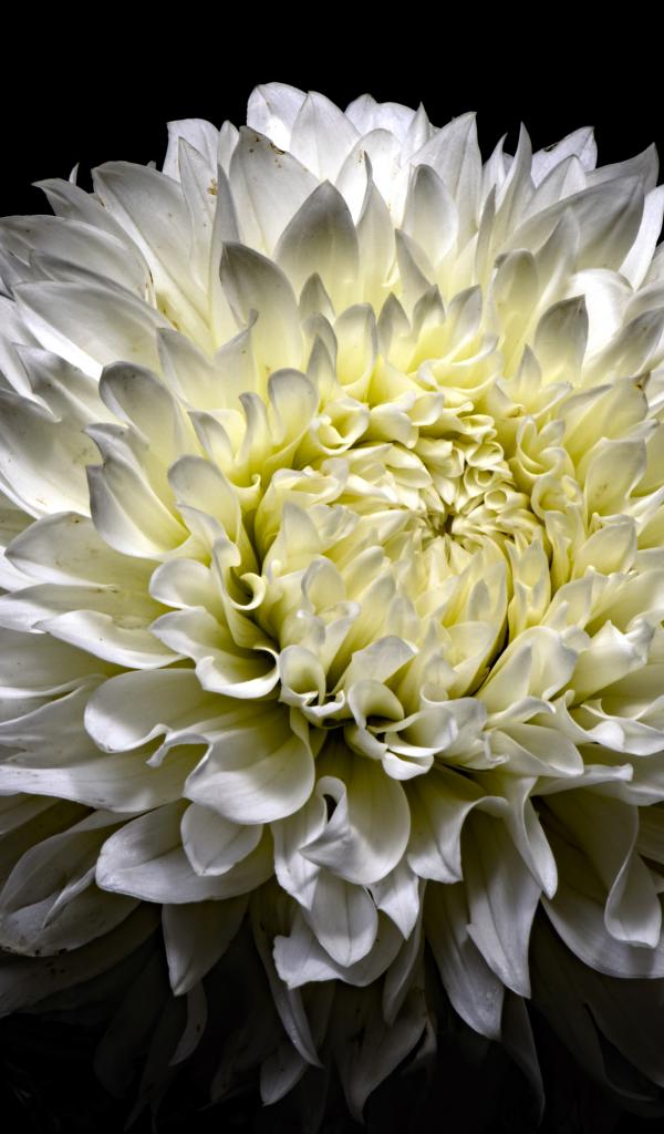 Обои Красивая белая пушистая хризантема на черном фоне