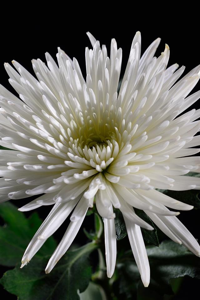 Обои Красивая белая хризантема на черном фоне
