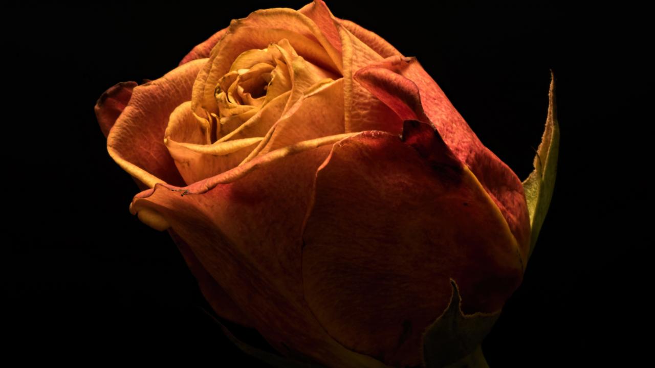 Обои Красивая оранжевая роза на черном фоне крупным планом