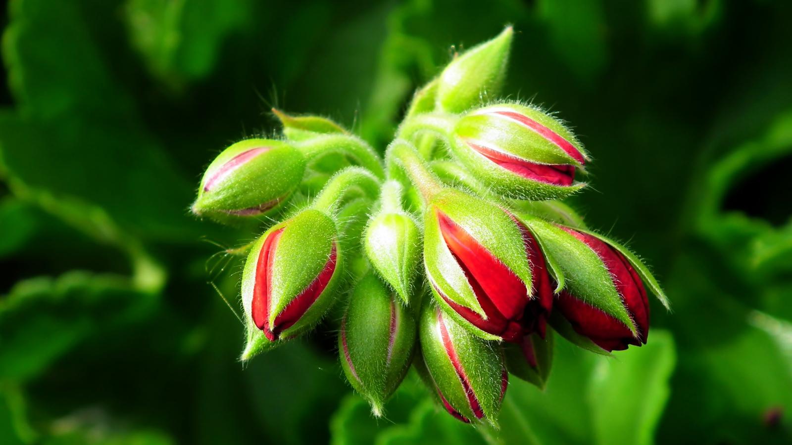 Обои Красные цветы герани распускаются
