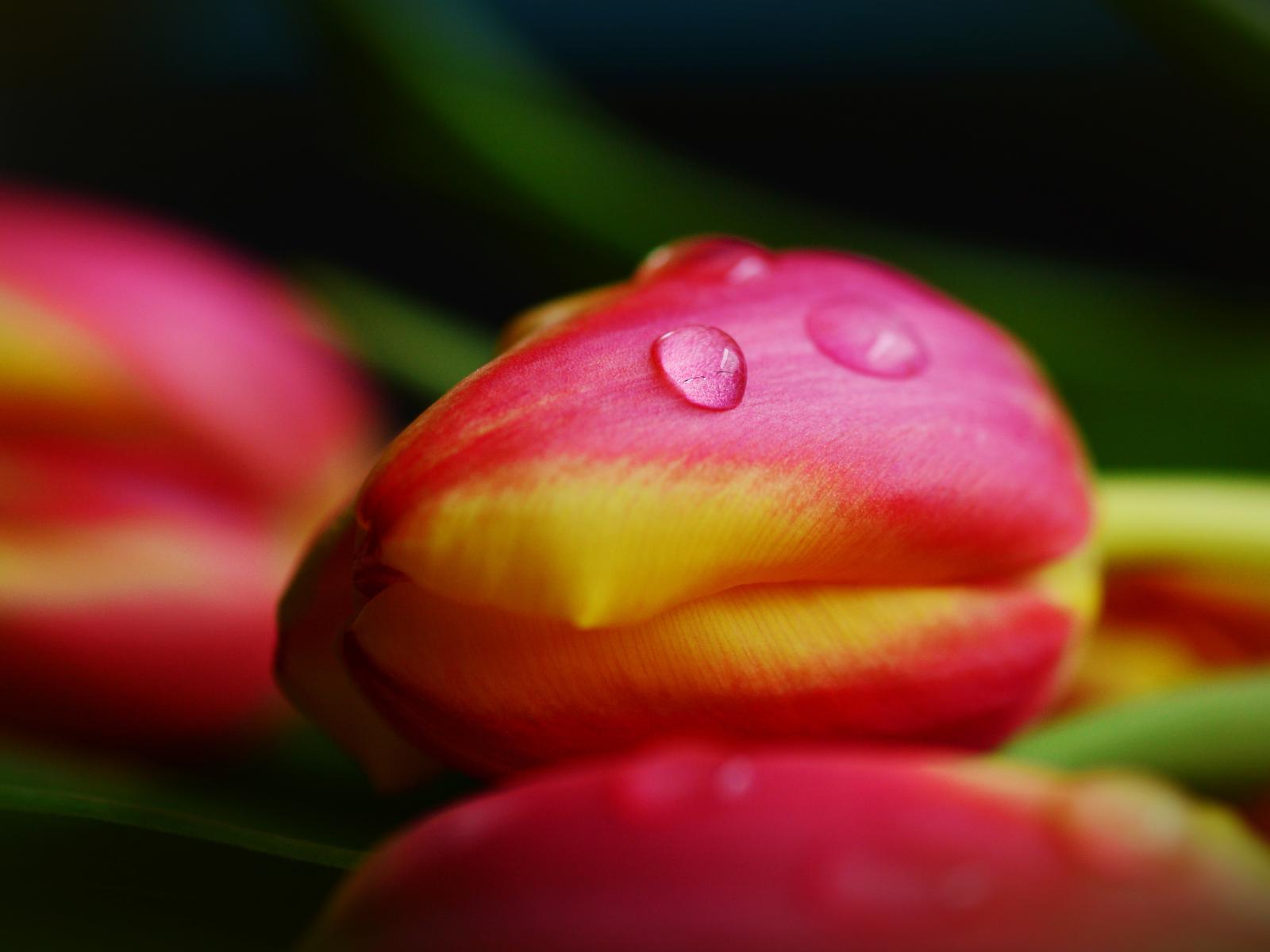 Обои Хрупкие розовые тюльпаны в каплях росы