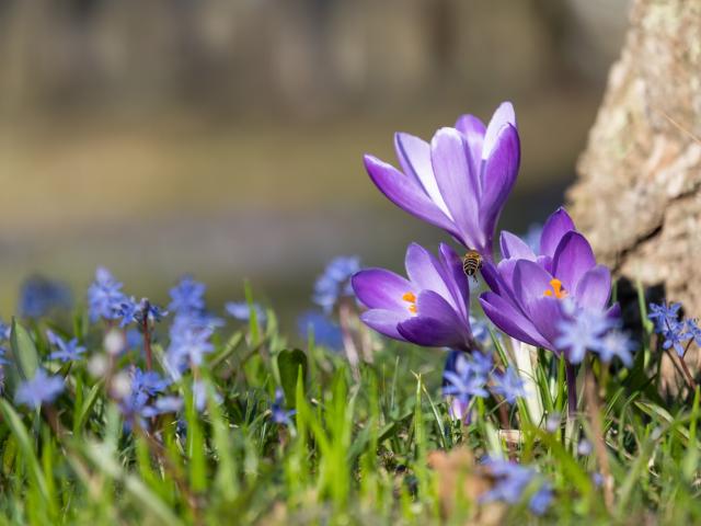 Обои Первые весенние цветы пролесок и крокусы