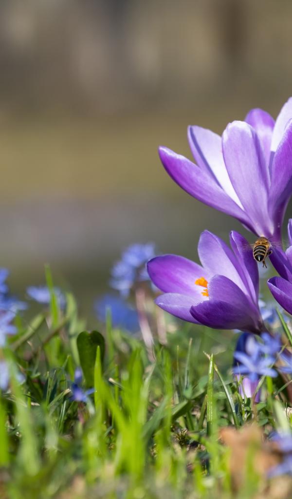 Обои Первые весенние цветы пролесок и крокусы