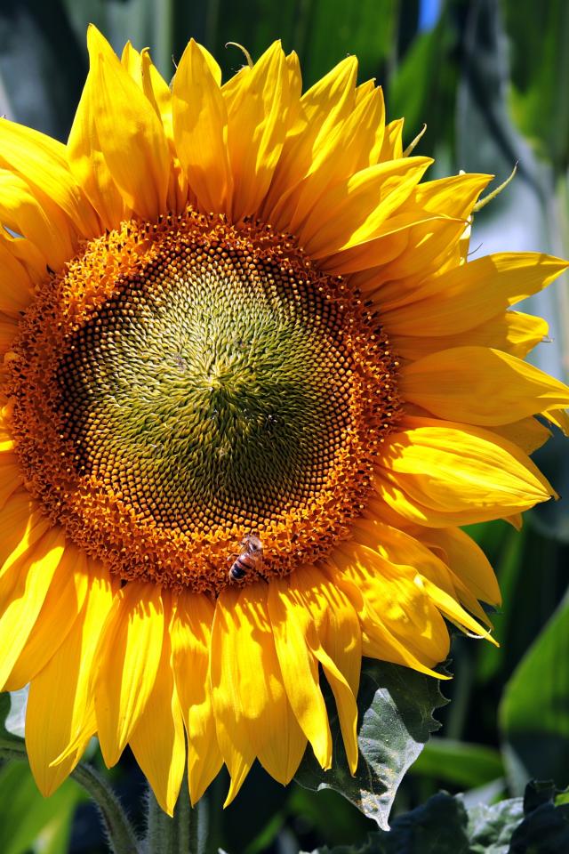 Обои Яркий желтый цветок подсолнуха крупным планом на поле