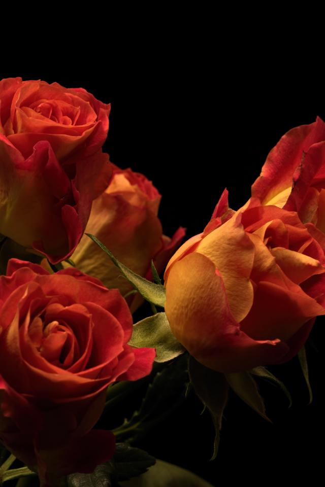 Обои Букет красивых оранжевых роз на черном фоне