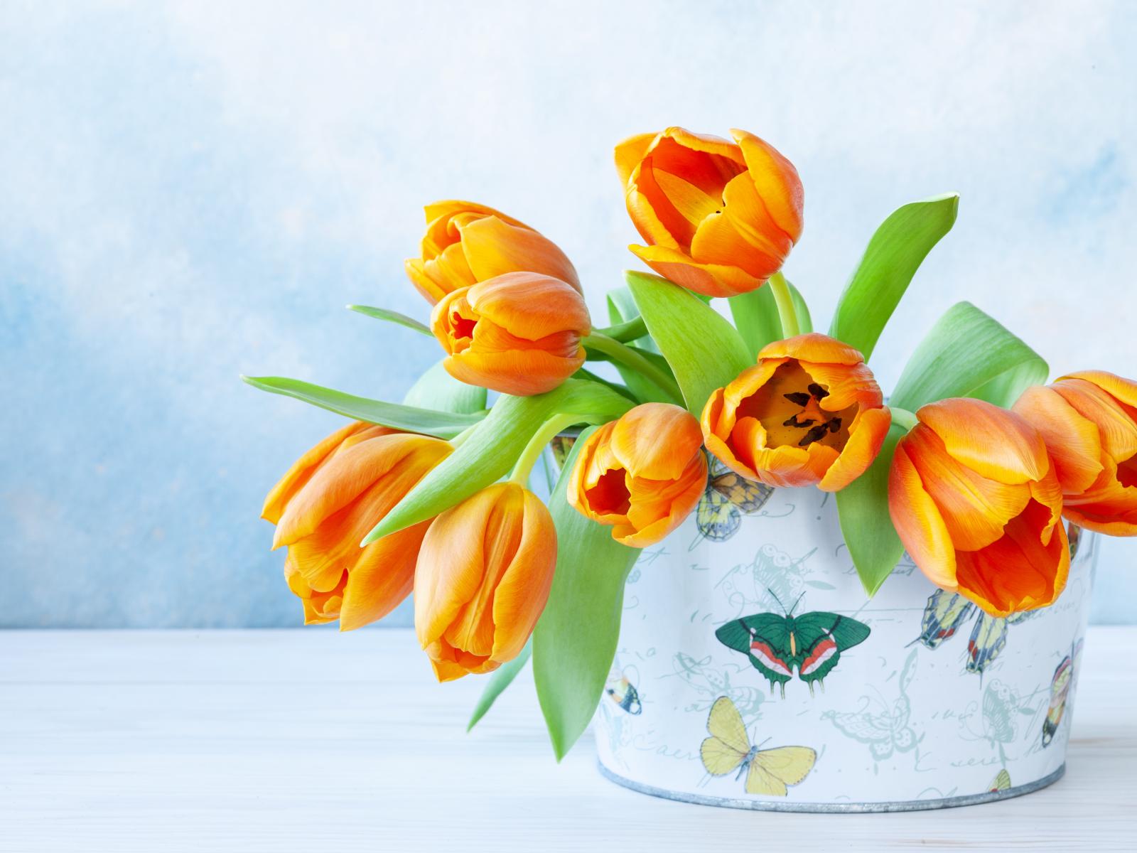 Обои Букет оранжевых тюльпанов в вазе