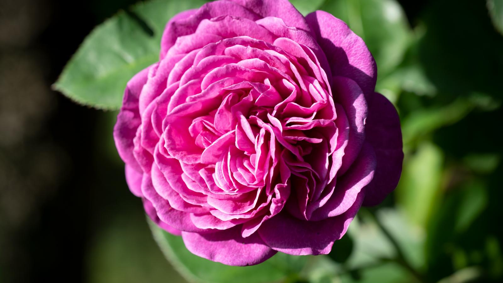 Обои Розовой цветок розы с зелеными листьями крупным планом
