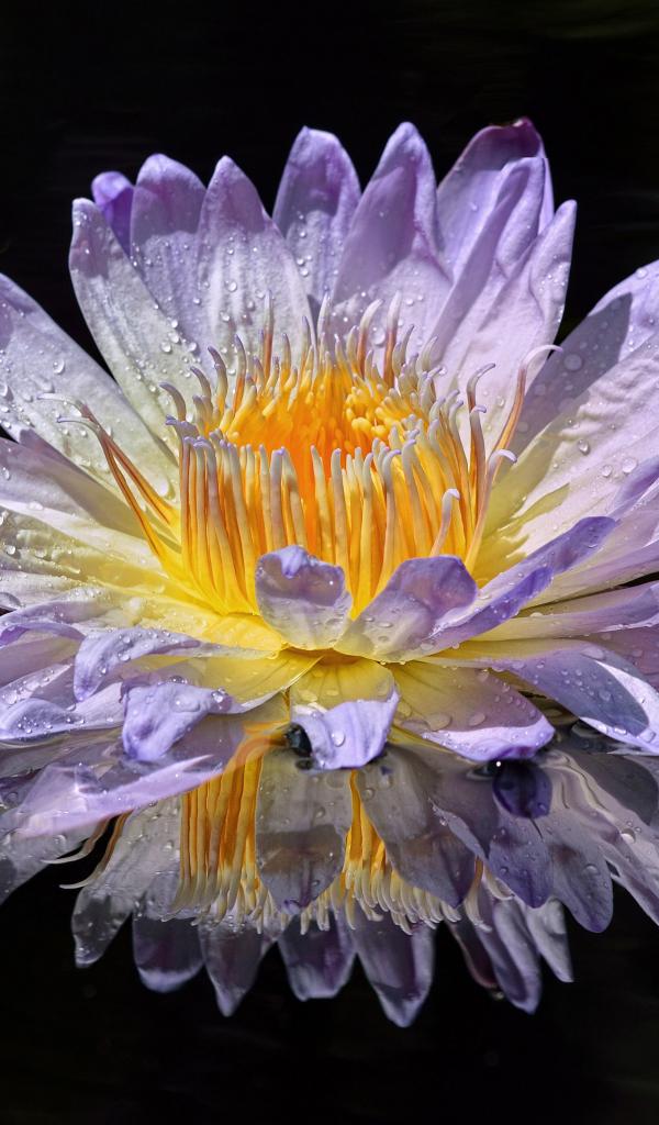Обои Фиолетовый цветок лотоса в лучах солнца в воде
