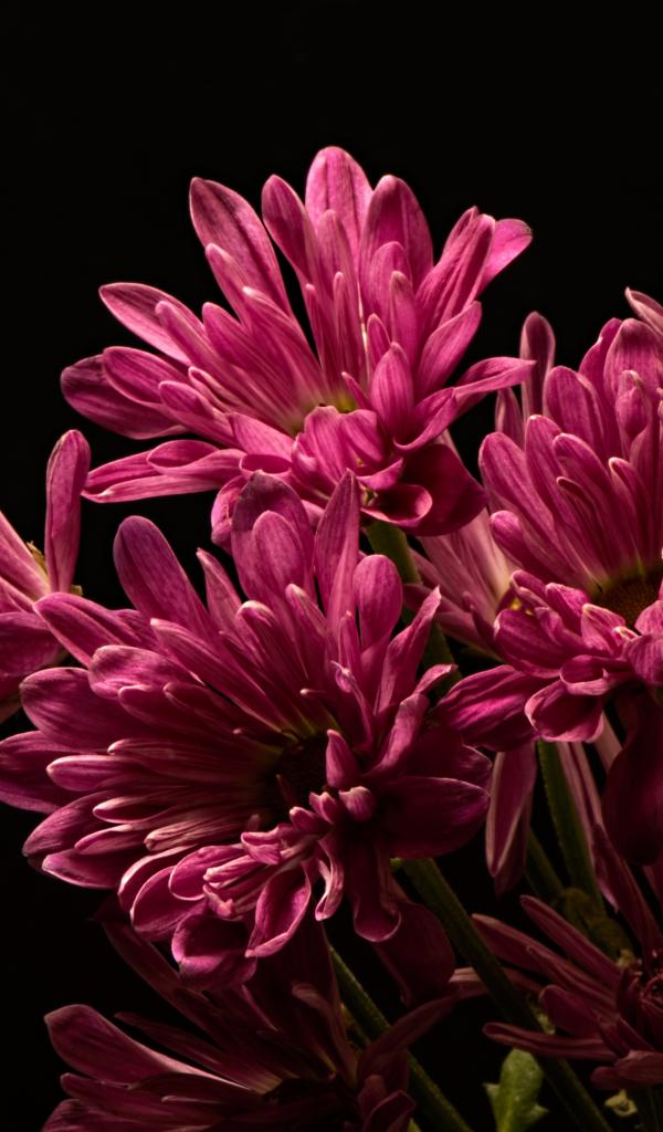 » Обои Букет розовых хризантем на черном фоне крупным планом