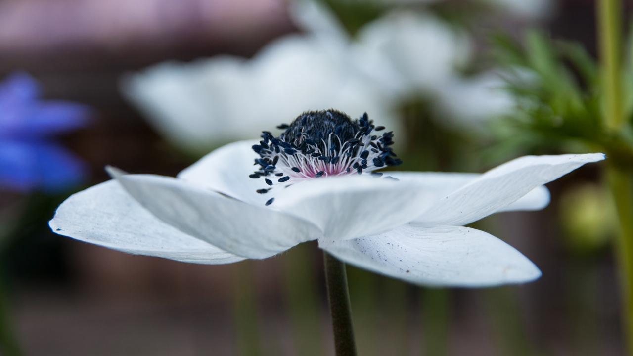 Обои Красивый белый цветок анемоны крупным планом