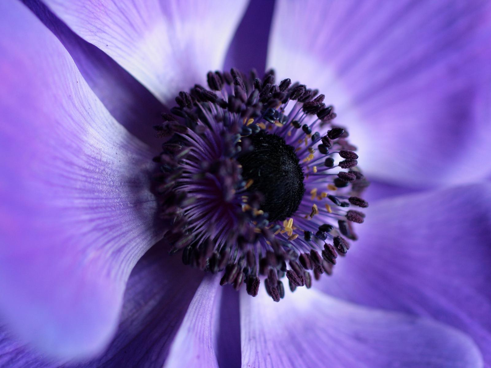 Обои Середина фиолетового цветка анемоны