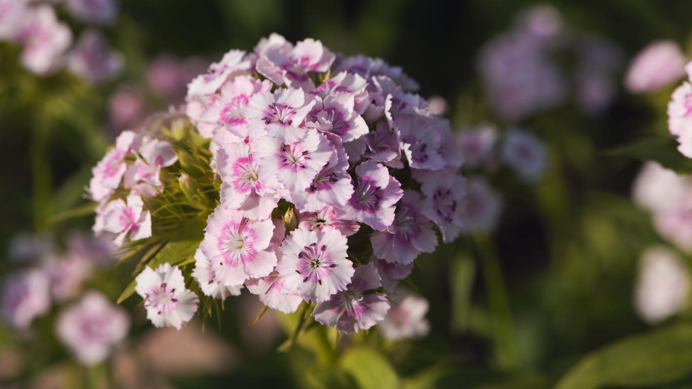 Обои Розовые цветы розовой гвоздики в лучах солнца