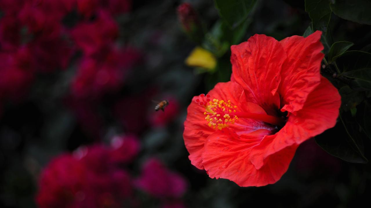Обои Большой красный цветок гибискуса крупным планом