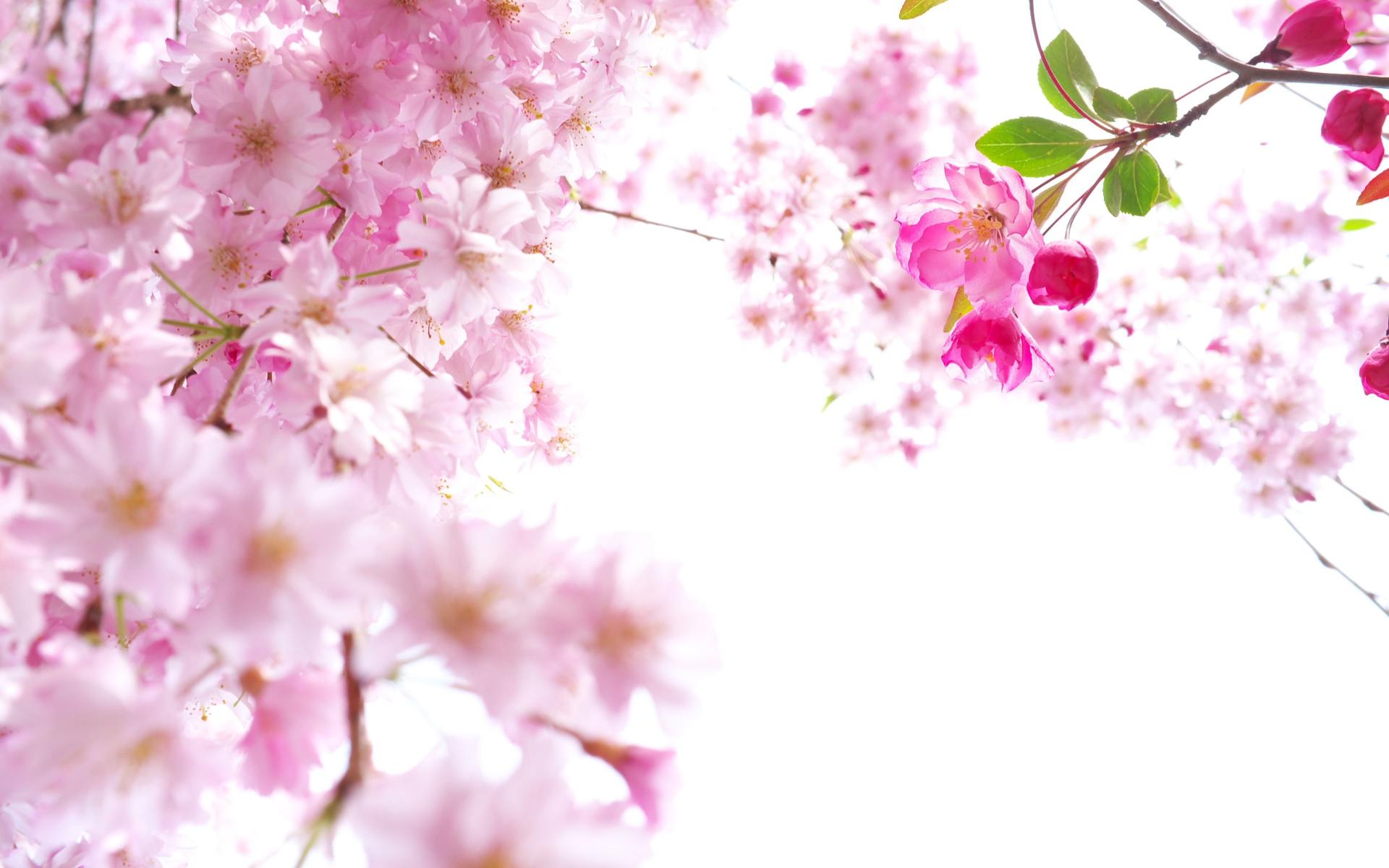 Обои Розовые цветы сакуры на ветках на белом фоне