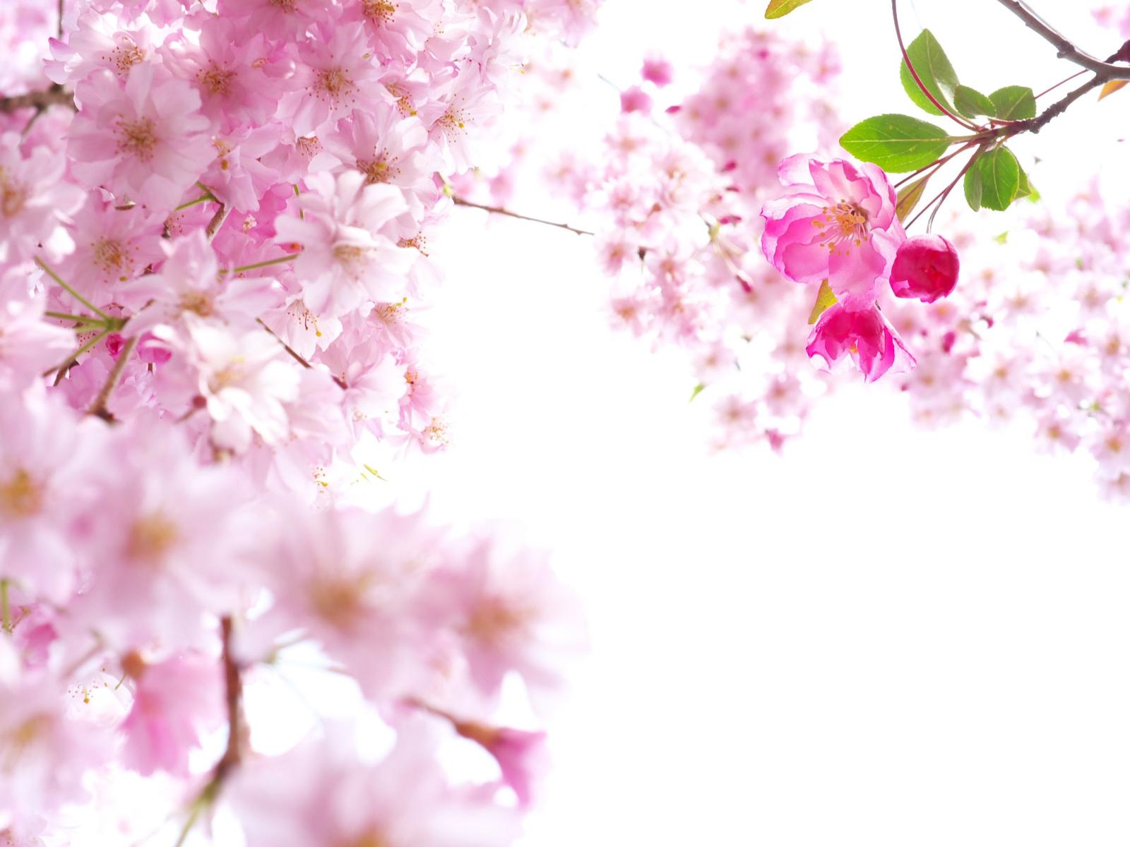 Обои Розовые цветы сакуры на ветках на белом фоне