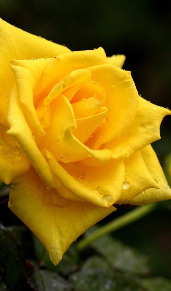 Обои Красивая желтая роза с бутоном в каплях росы крупным планом