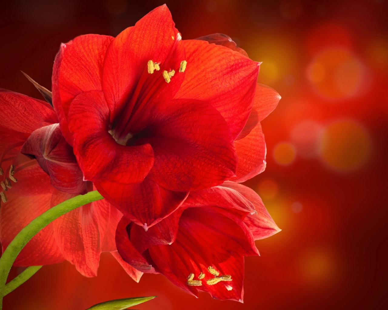 Обои Красные комнатные цветы амариллис крупным планом