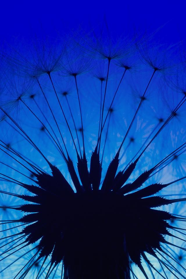 Обои Белый одуванчик на фоне голубого неба в сумерках