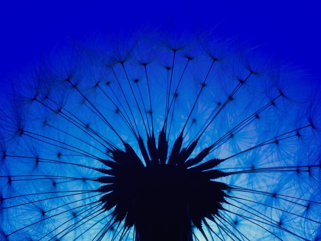 Обои Белый одуванчик на фоне голубого неба в сумерках