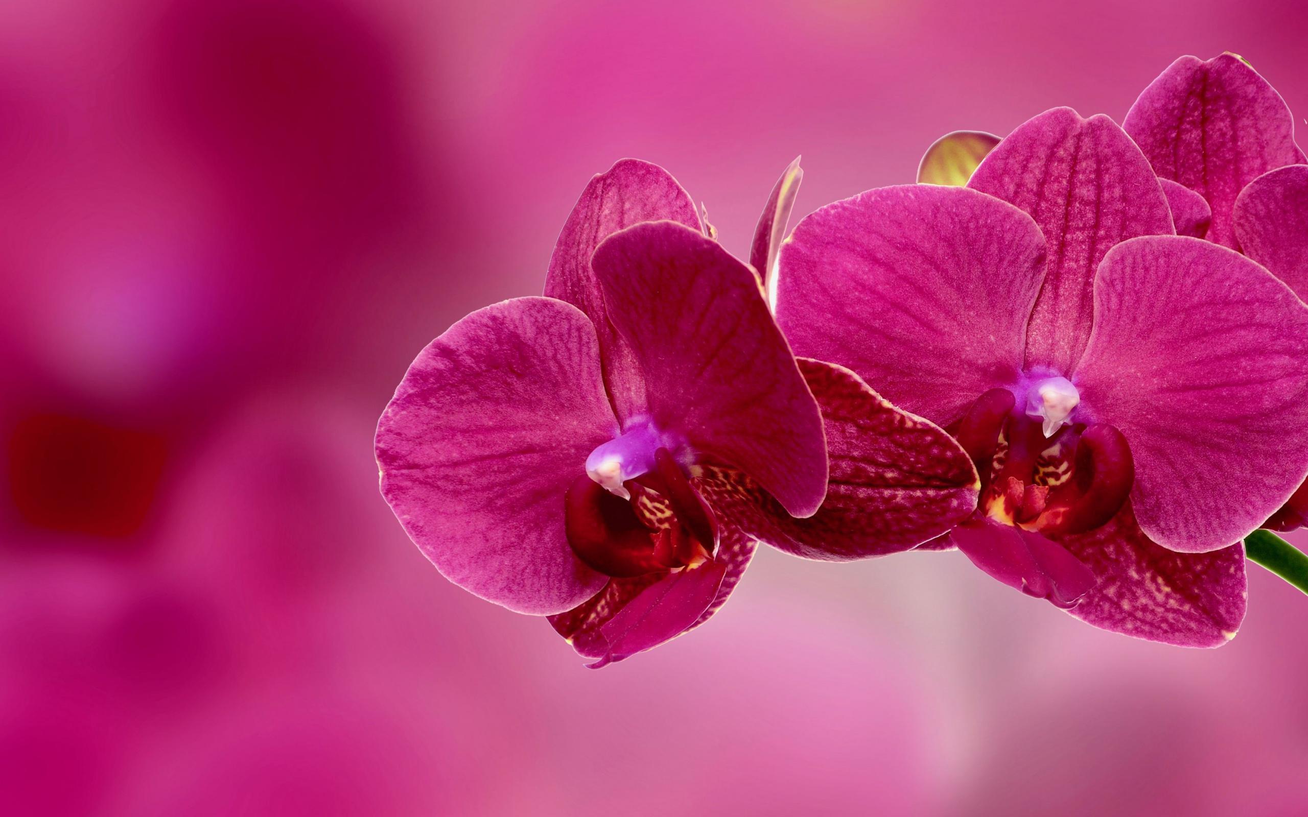 Обои Красивые розовые цветы орхидеи крупным планом на розовом фоне