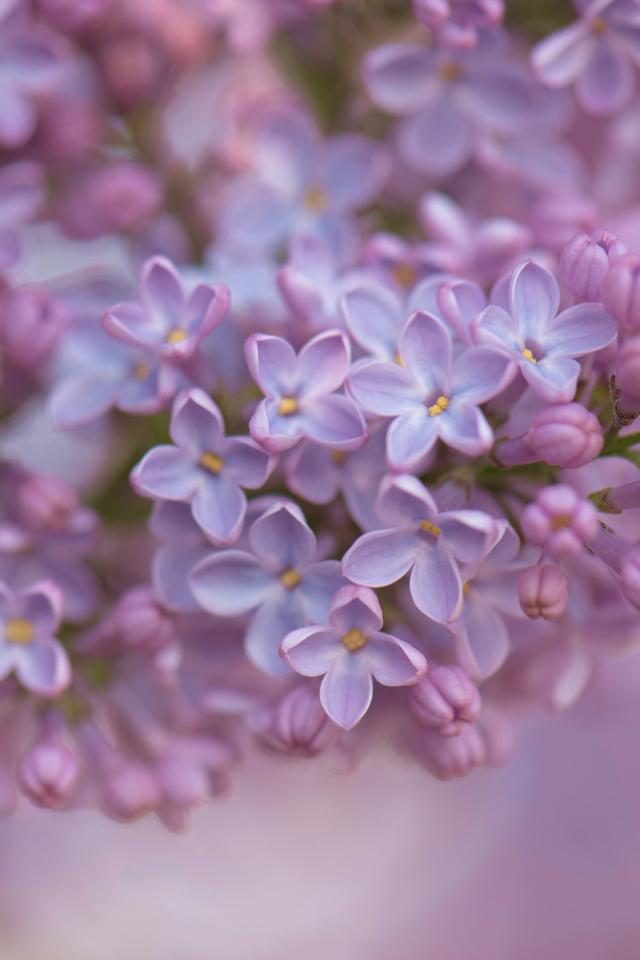 Обои Сиреневые цветы сирени в зеленых листьях крупным планом