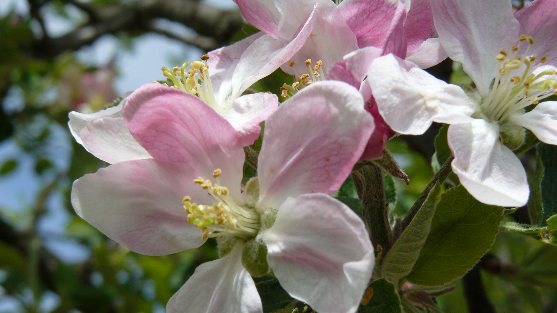 Обои Розовые цветы яблони крупным планом
