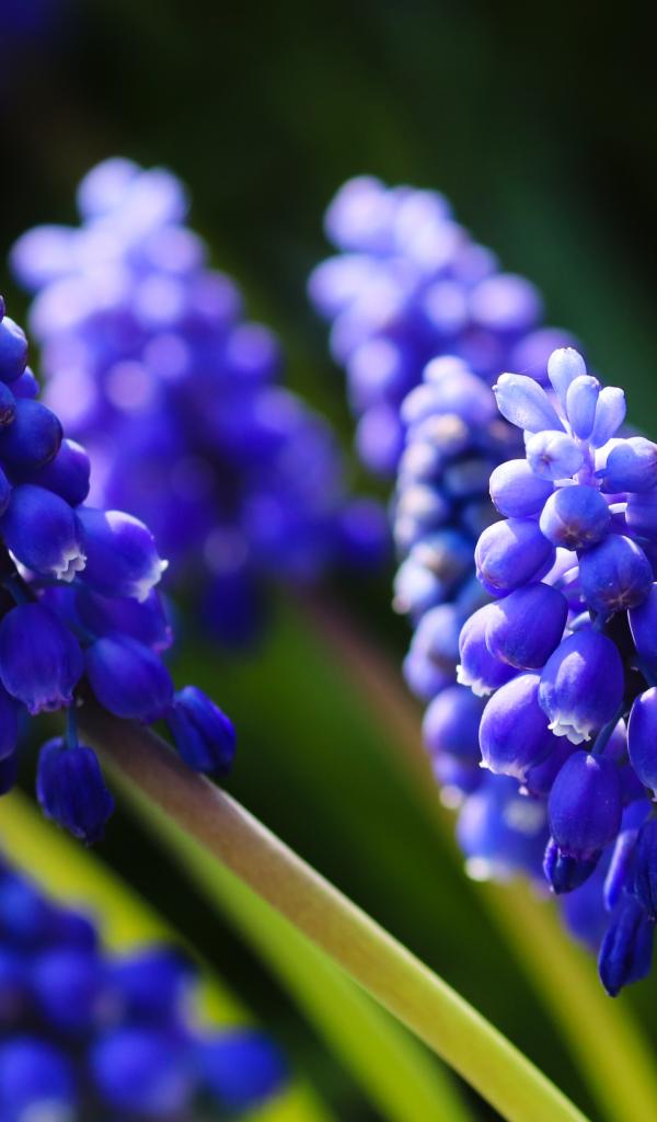 Обои Маленькие синие цветы мускари в лучах солнца