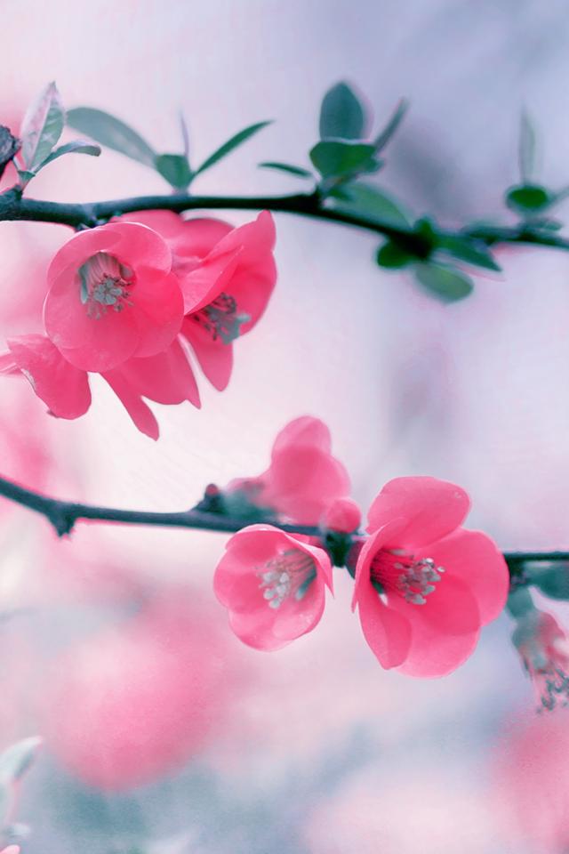 Обои Розовые нежные цветы с зелеными листьями на ветке