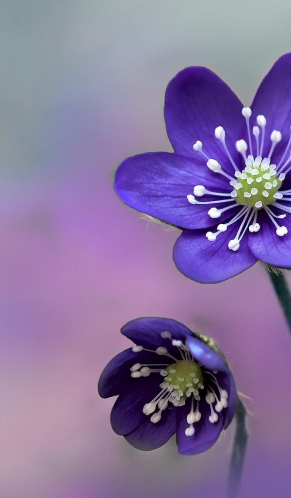 Обои Маленькие фиолетовые цветы на размытом фоне