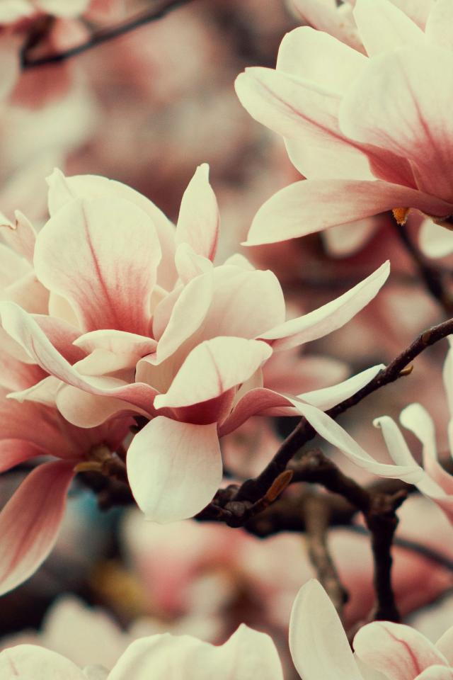 Обои Розовые цветы магнолии на ветке дерева